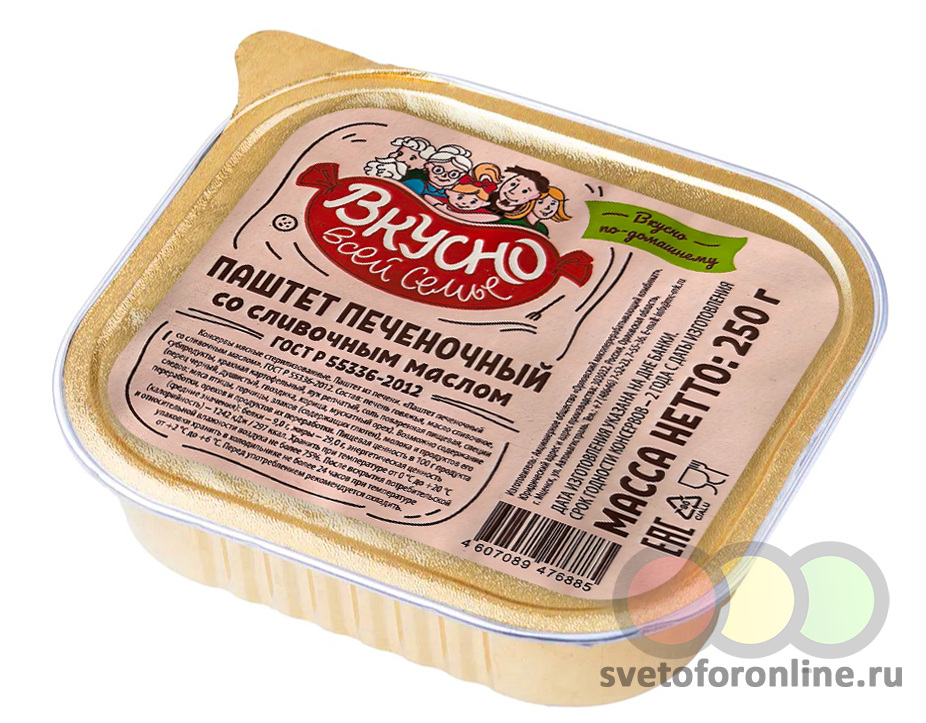 Паштет "Печеночный со сливочным маслом" ГОСТ, ламистер,250гр. - Купить в магазине "Светофор" город Старый Оскол, пр-кт Алексея Угарова, д 14Б
